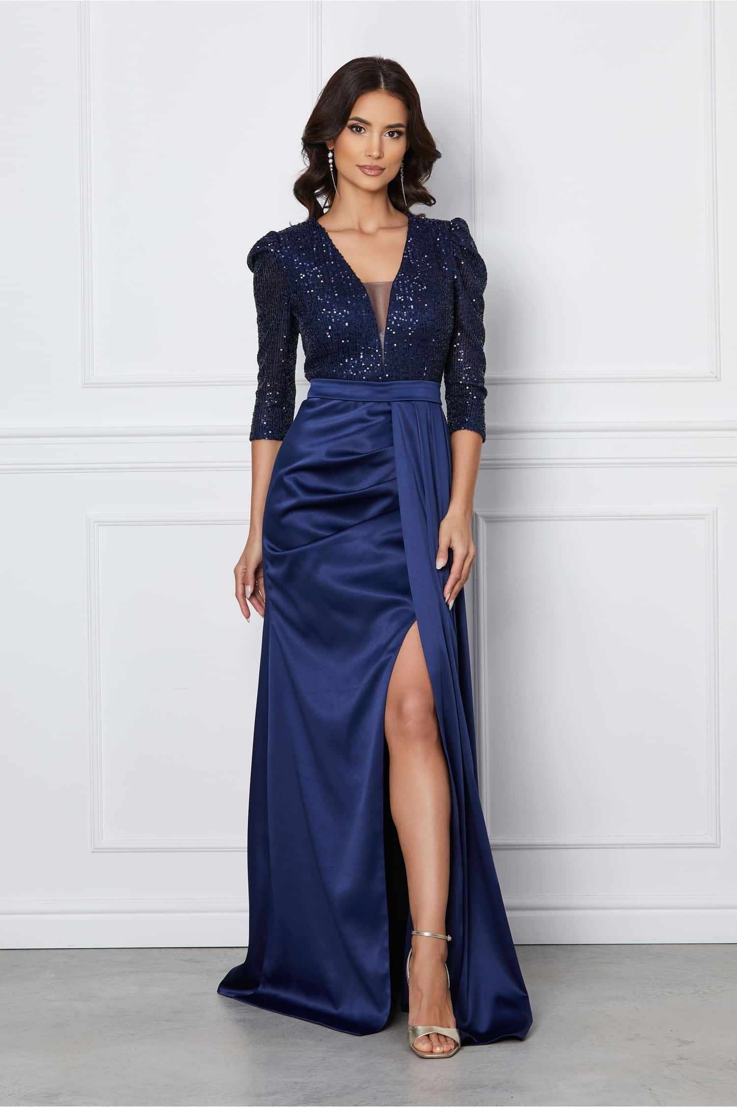 Specification: Rochie MBG lunga bleumarin cu paiete la bust