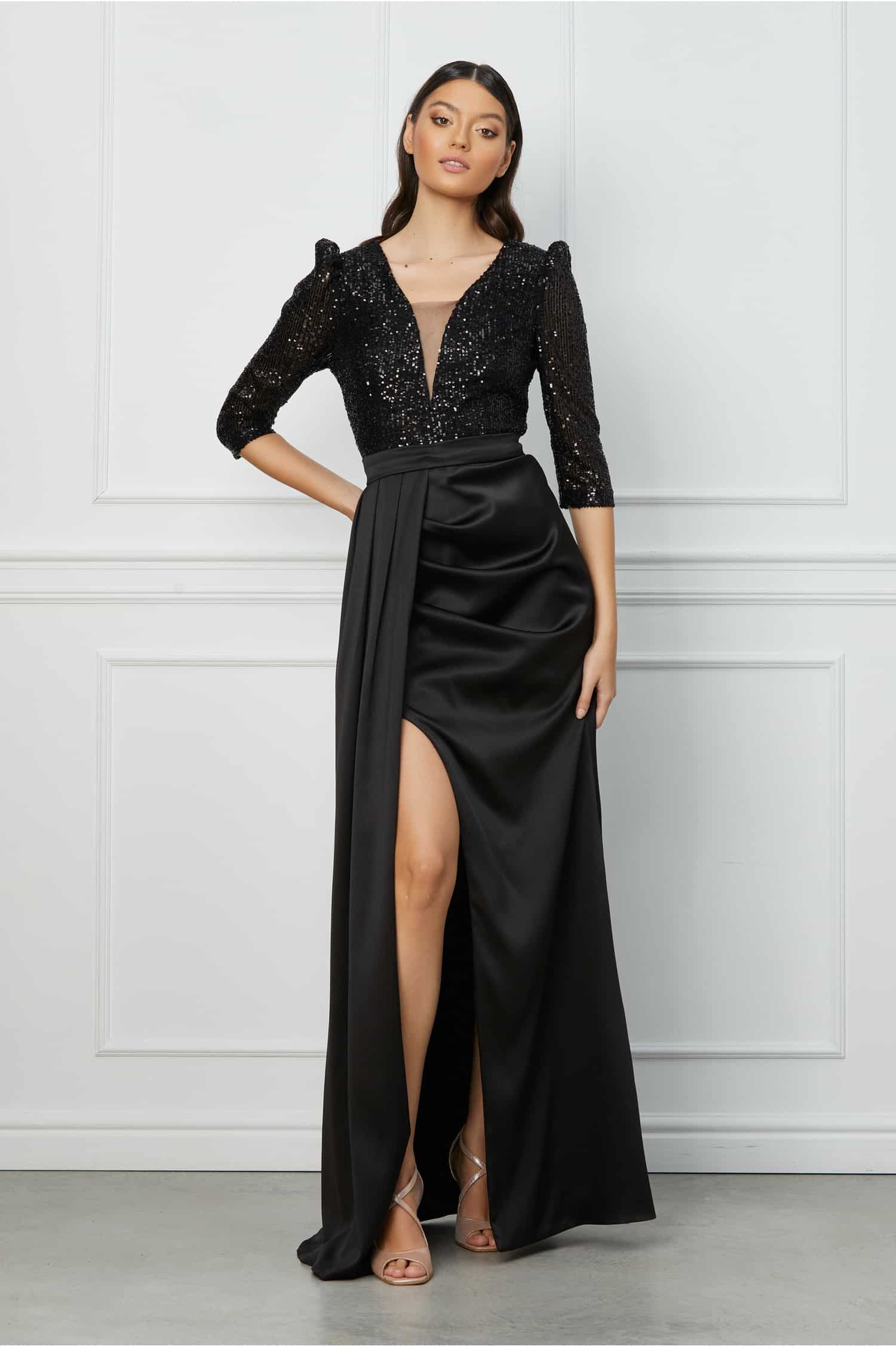 Rochie MBG lunga neagra cu paiete la bust