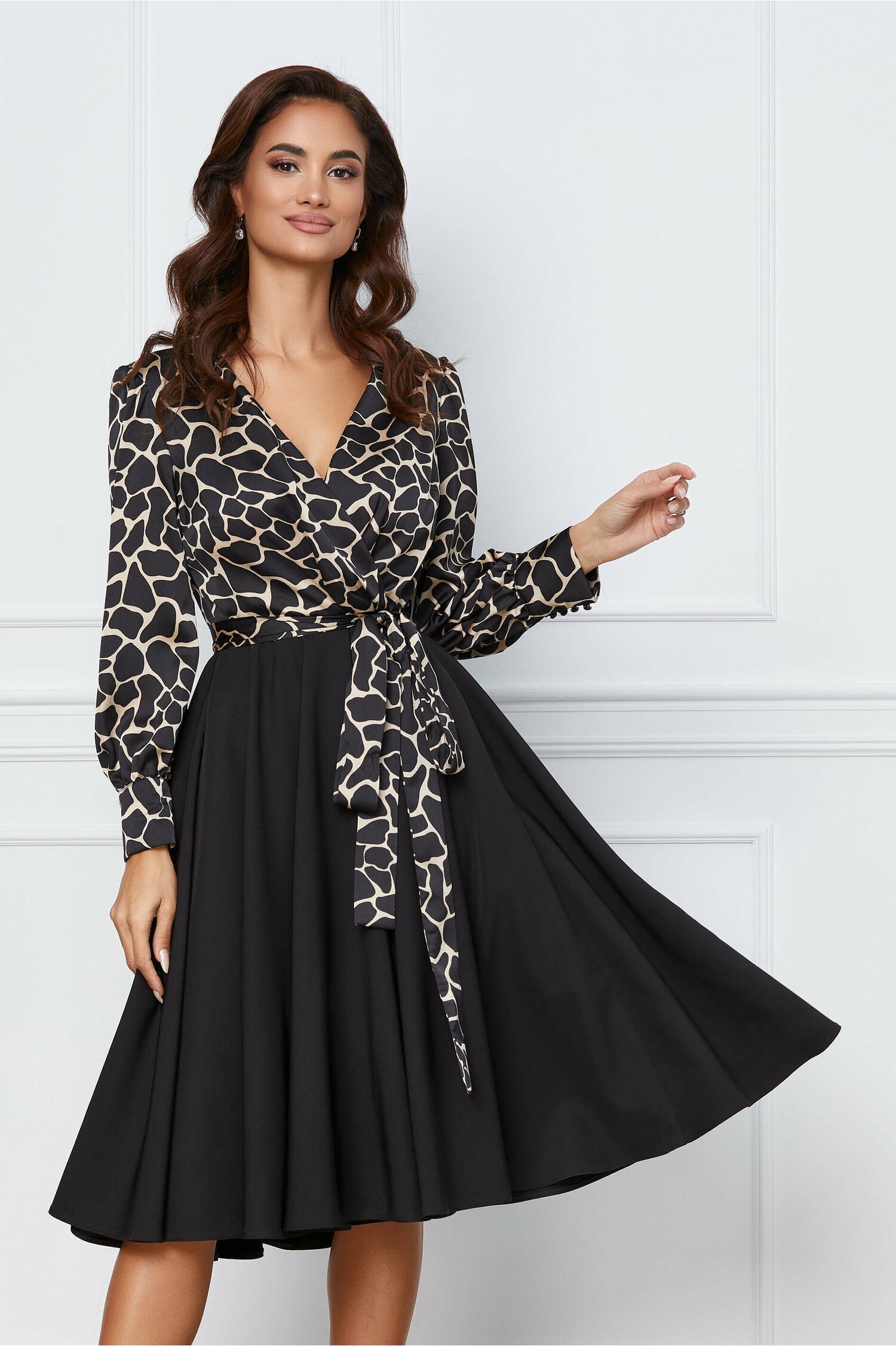 Rochie MBG neagra cu imprimeu bej la bust! Transport si retur gratuite indiferente de valoarea comenzii!