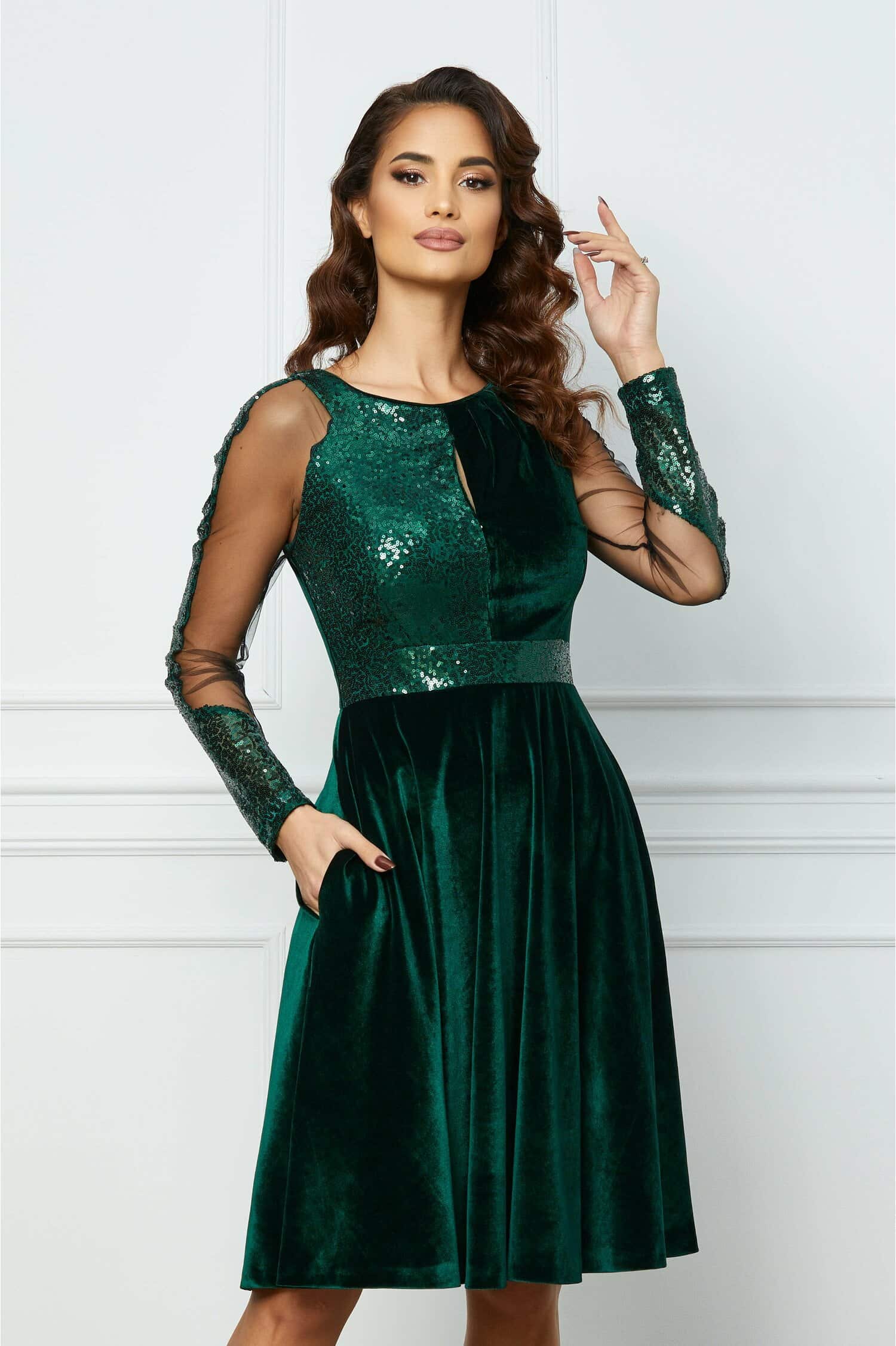 Specification: Rochie MBG verde din catifea cu paiete la bust