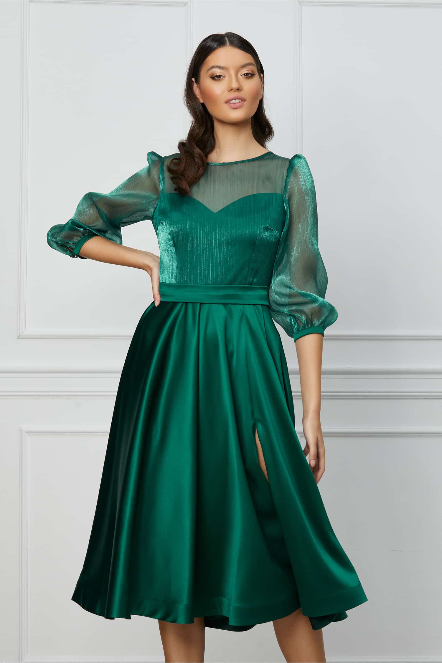 Rochie MBG verde din satin cu bust din organza ! Transport si retur gratuite indifernet de valoarea comenzii!