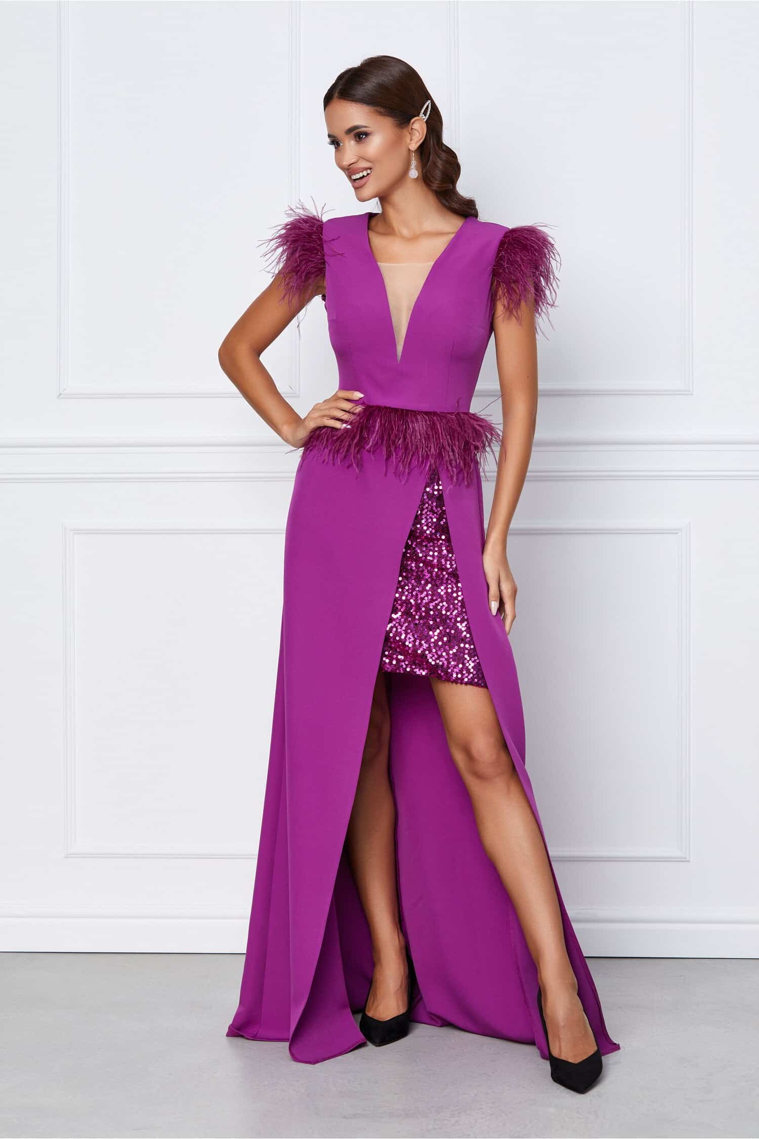 Specification: Rochie MBG verde lunga cu pene si paiete