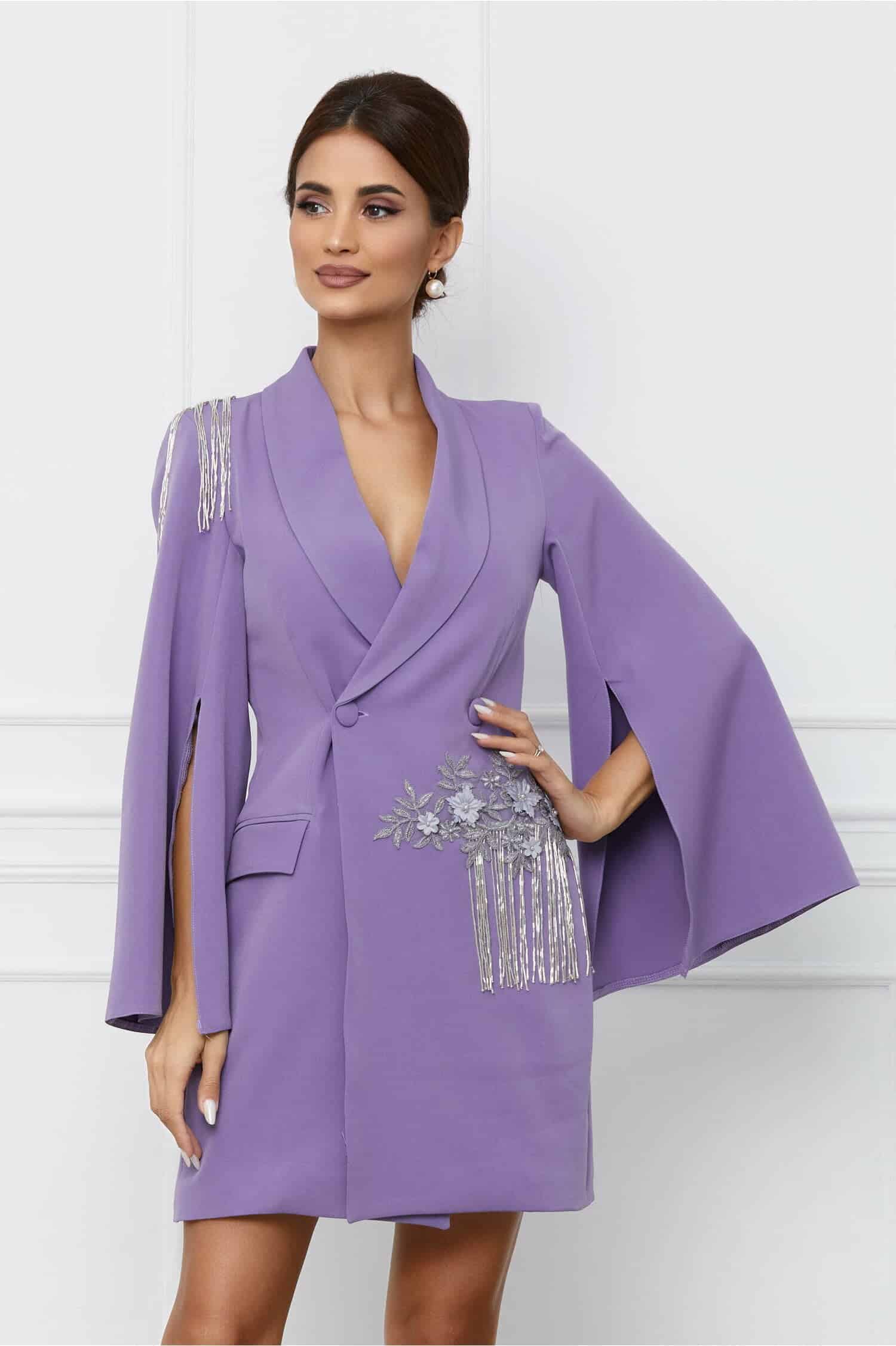 Specification: Rochie MBG verde tip sacou cu franjuri in talie si pe umar