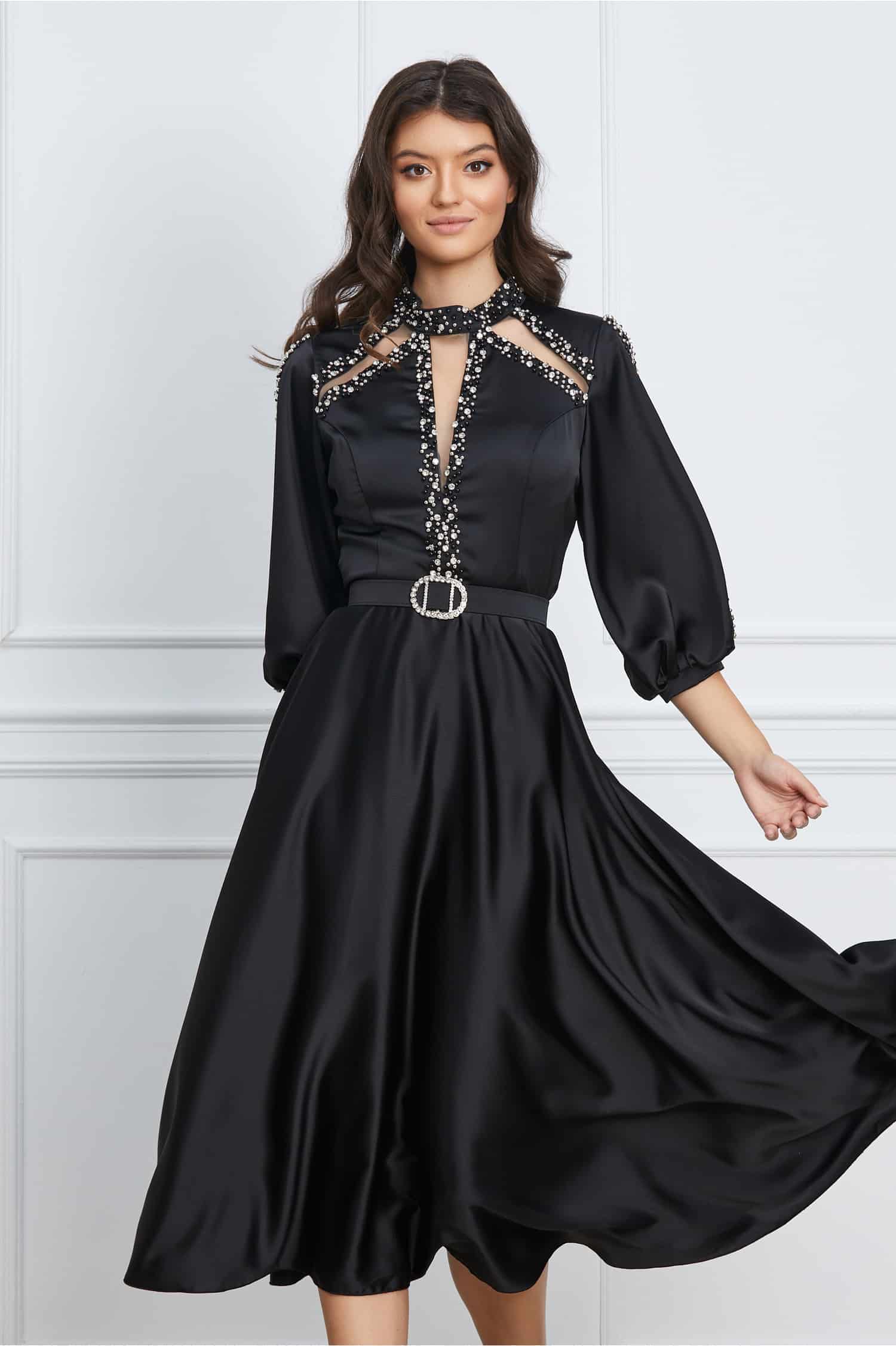 Rochie Mirabela neagra cu strasuri si tull la bust