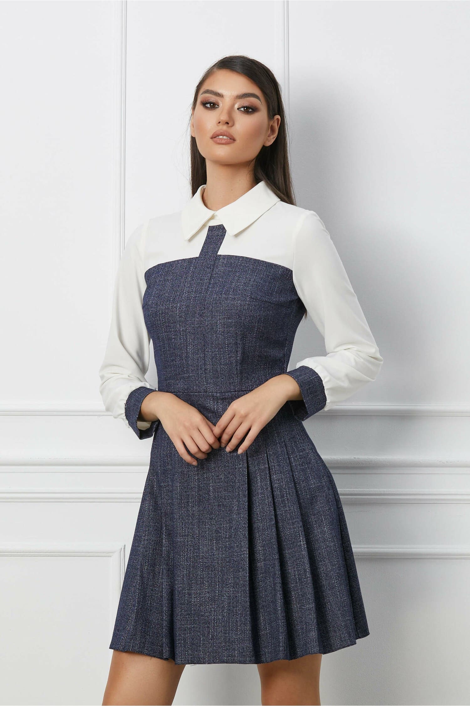 Specification: Rochie Moze bleumarin cu guler si maneci albe