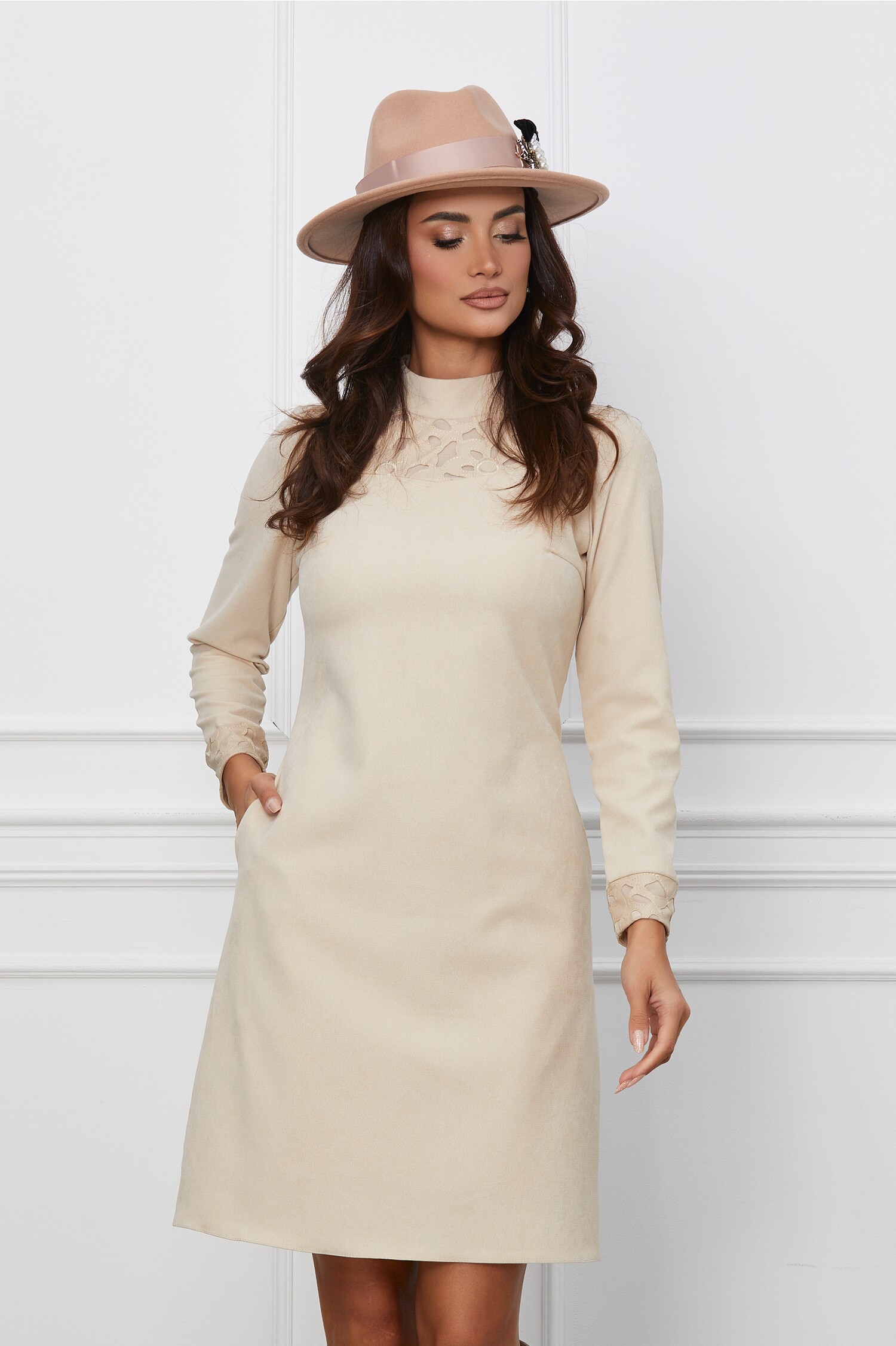 Rochie Moze ivory cu insertii din piele ecologica la bust! La acest produs ai transport si retur gratuite!