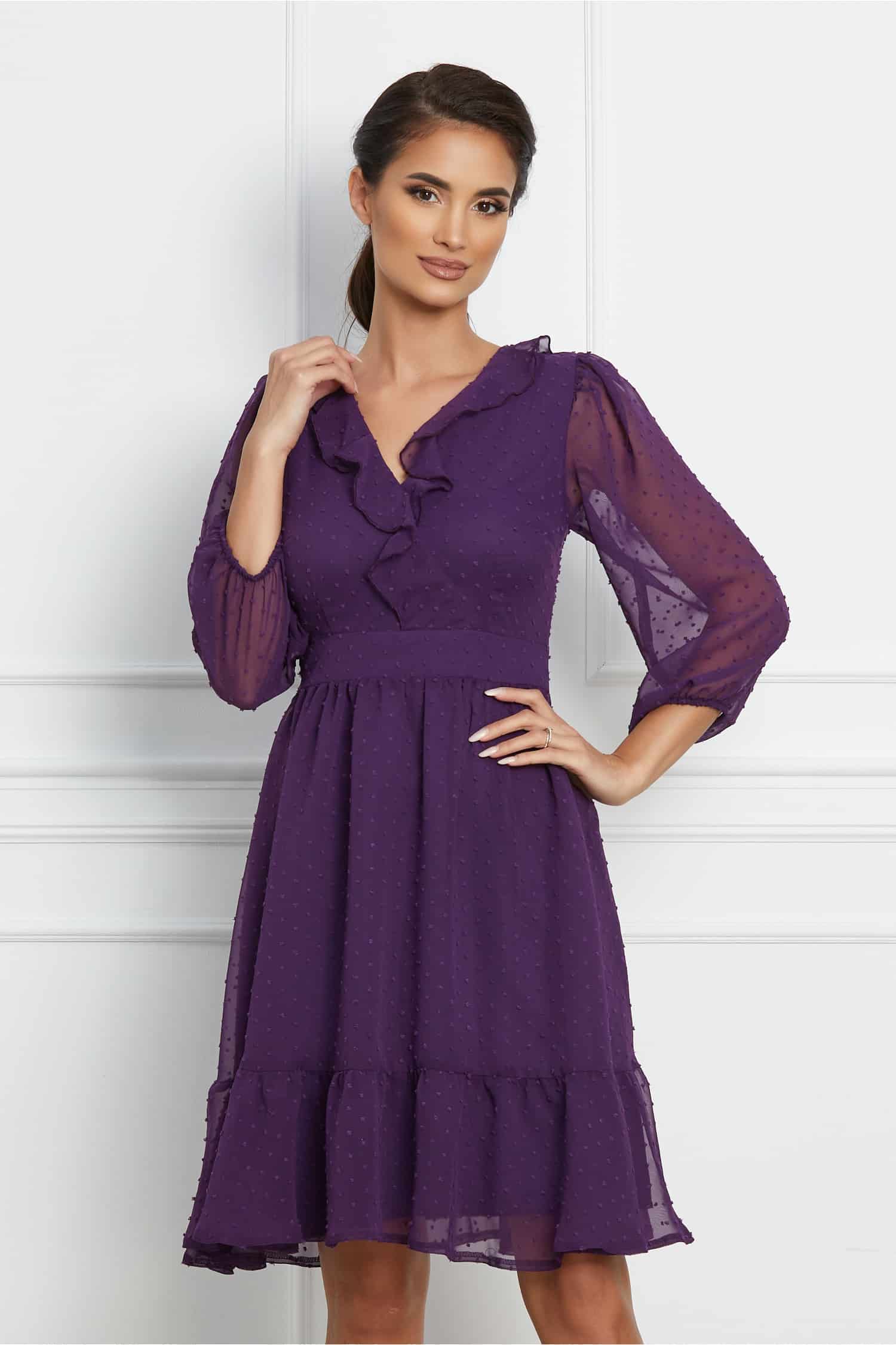 Rochie Moze mov din voal cu aplicatii in relief ! Transport si retur gratuite indifernet de valoarea comenzii!