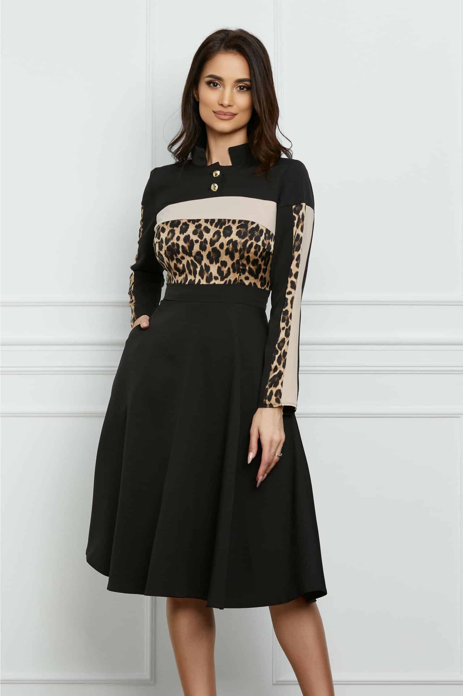 Rochie Moze neagra cu animal print bej la bust ! Transport si retur gratuite indifernet de valoarea comenzii!