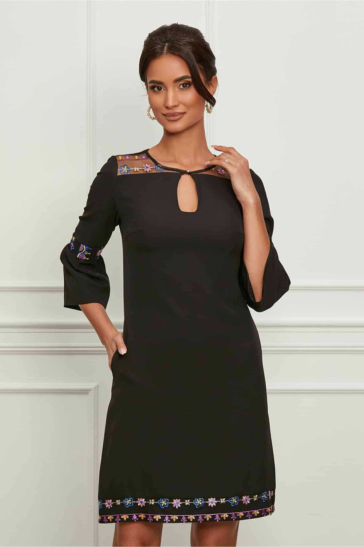 Rochie Moze neagra cu broderie discreta ! Transport si retur gratuite indifernet de valoarea comenzii!