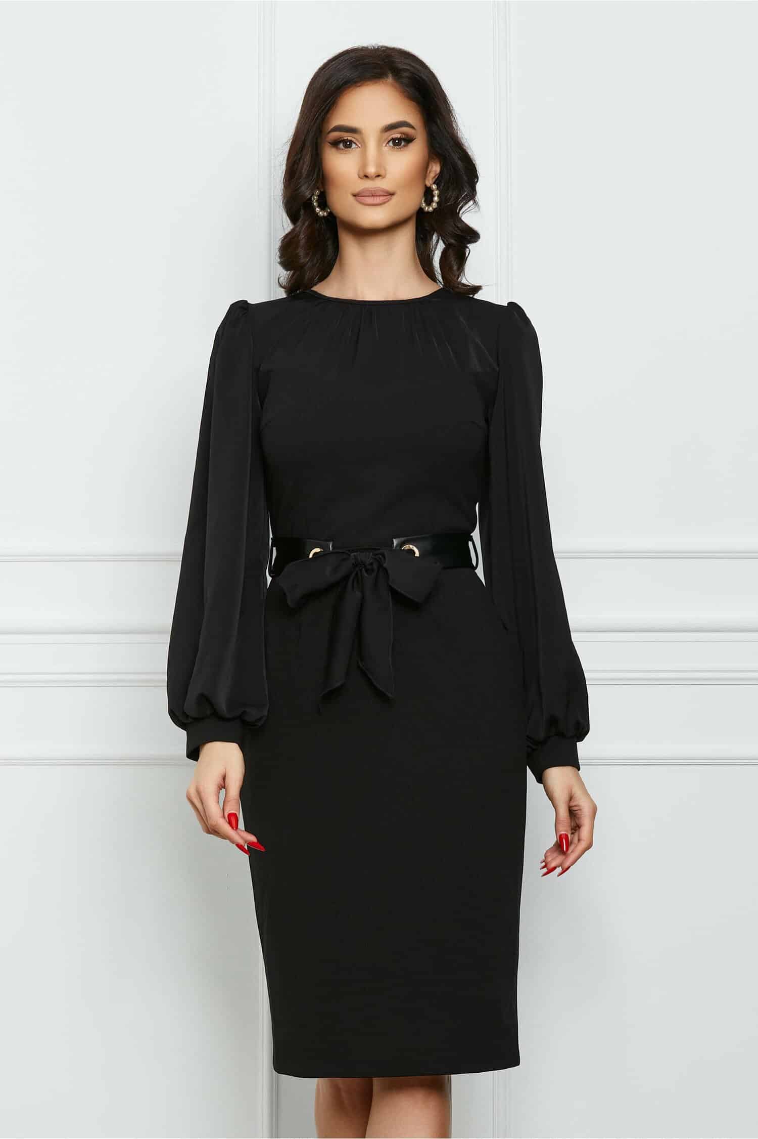 Specification: Rochie Moze neagra cu centura din piele ecologica in talie