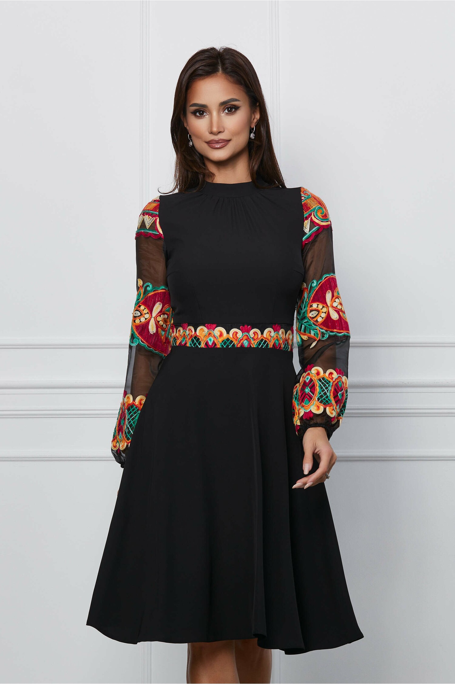 Specification: Rochie Moze neagra cu maneci din organza cu broderie orange