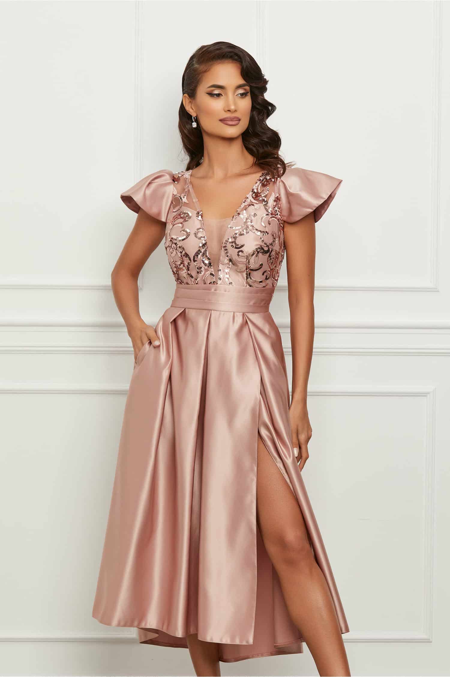 Specification: Rochie Moze roz cu paiete la bust si crepeu maxi