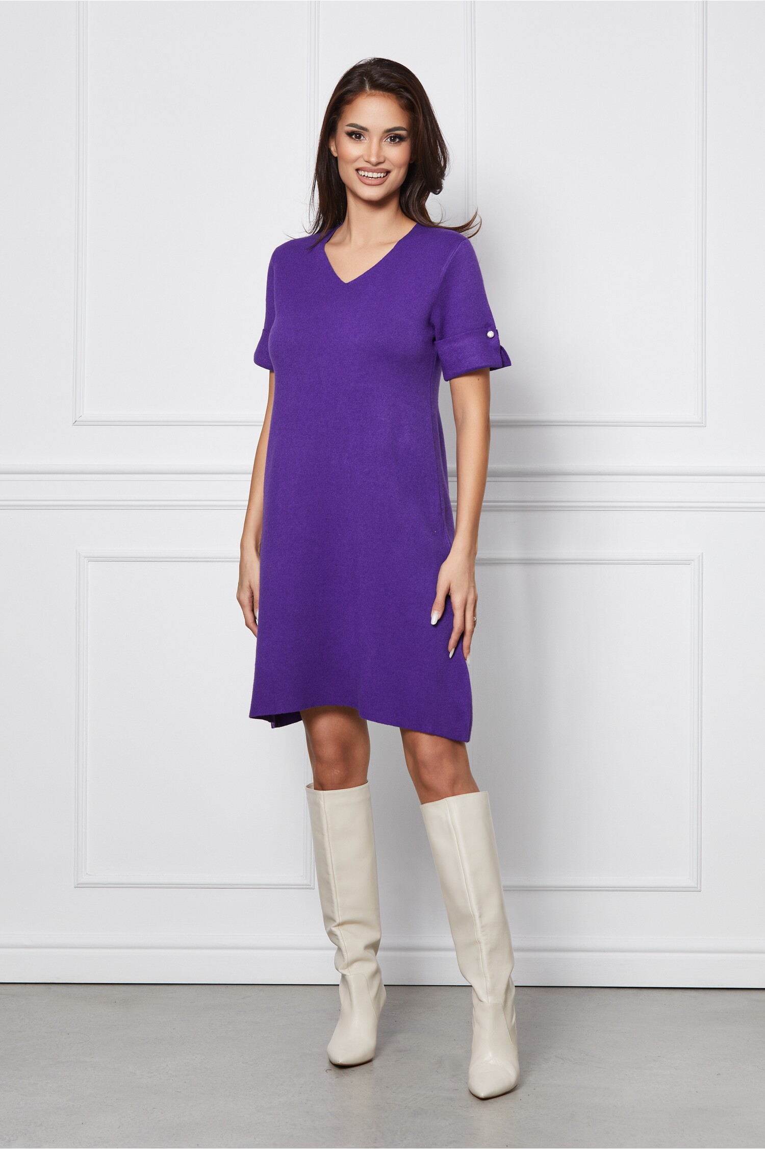 Specification: Rochie Porta mov din tricot cu maneci scurte