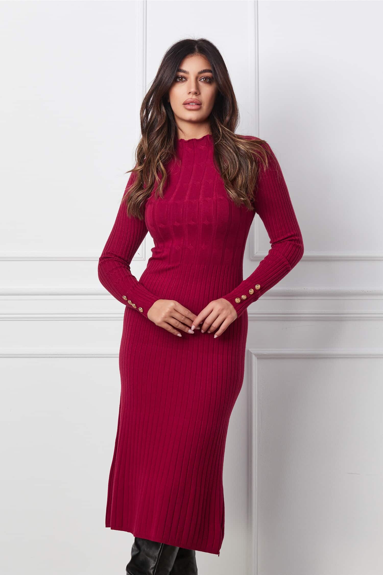Specification: Rochie Selena bordo din tricot cu model in relief