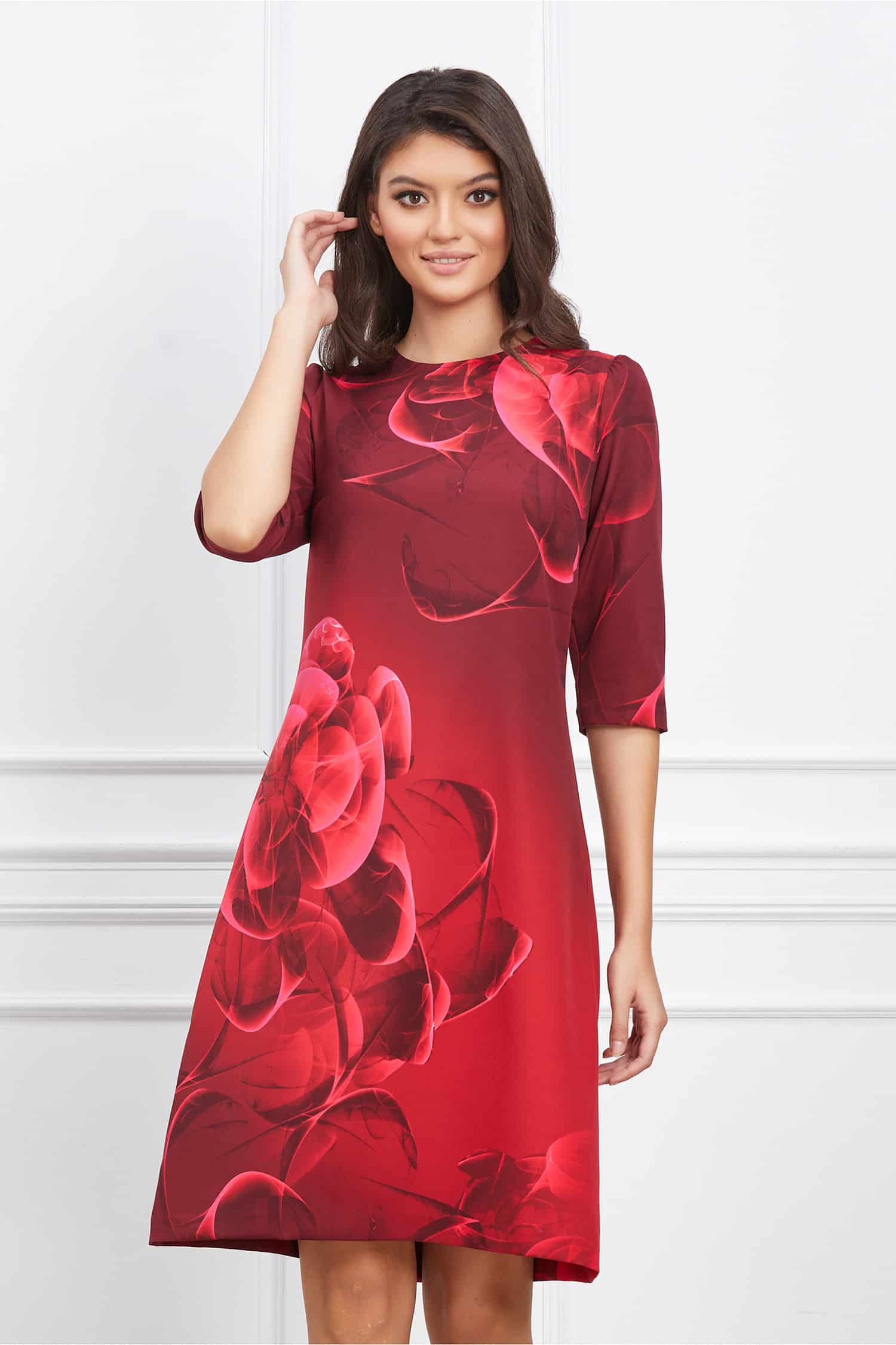 Specification: Rochie Viviana bordo cu imprimeuri floral fucsia