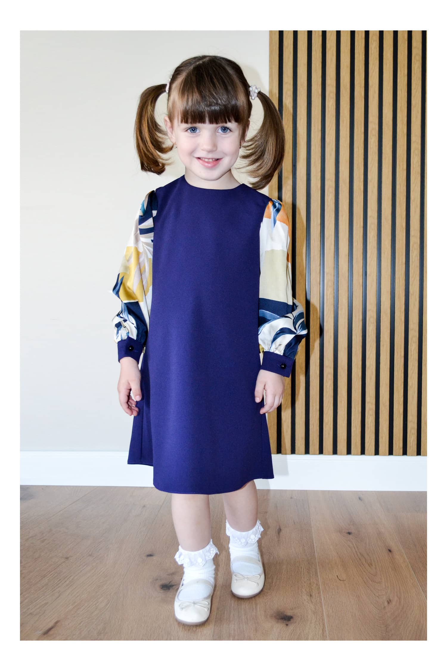 Rochita pentru fetite Dy Fashion bleumarin cu imprimeuri pe maneci ! Transport si retur gratuite indifernet de valoarea comenzii!