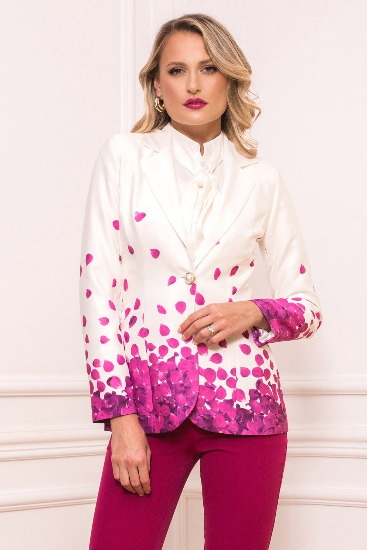 Sacou alb cu rever si imprimeu! Cost curierat oriunde in ROMANIA -15 lei! Livrare in EASYBOX – 10 lei! Livram in UE.