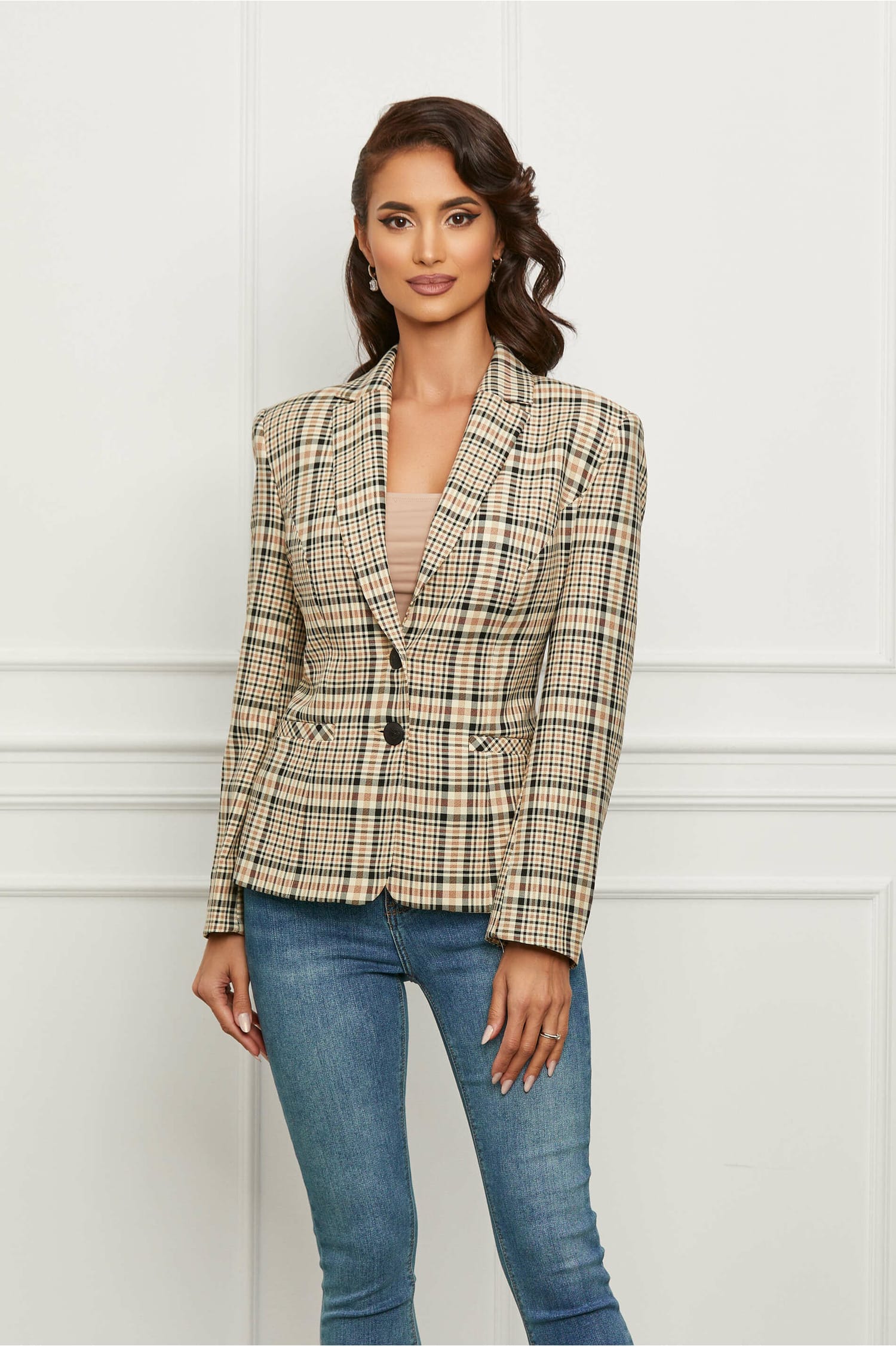 Sacou Irina bej cu carouri negre
