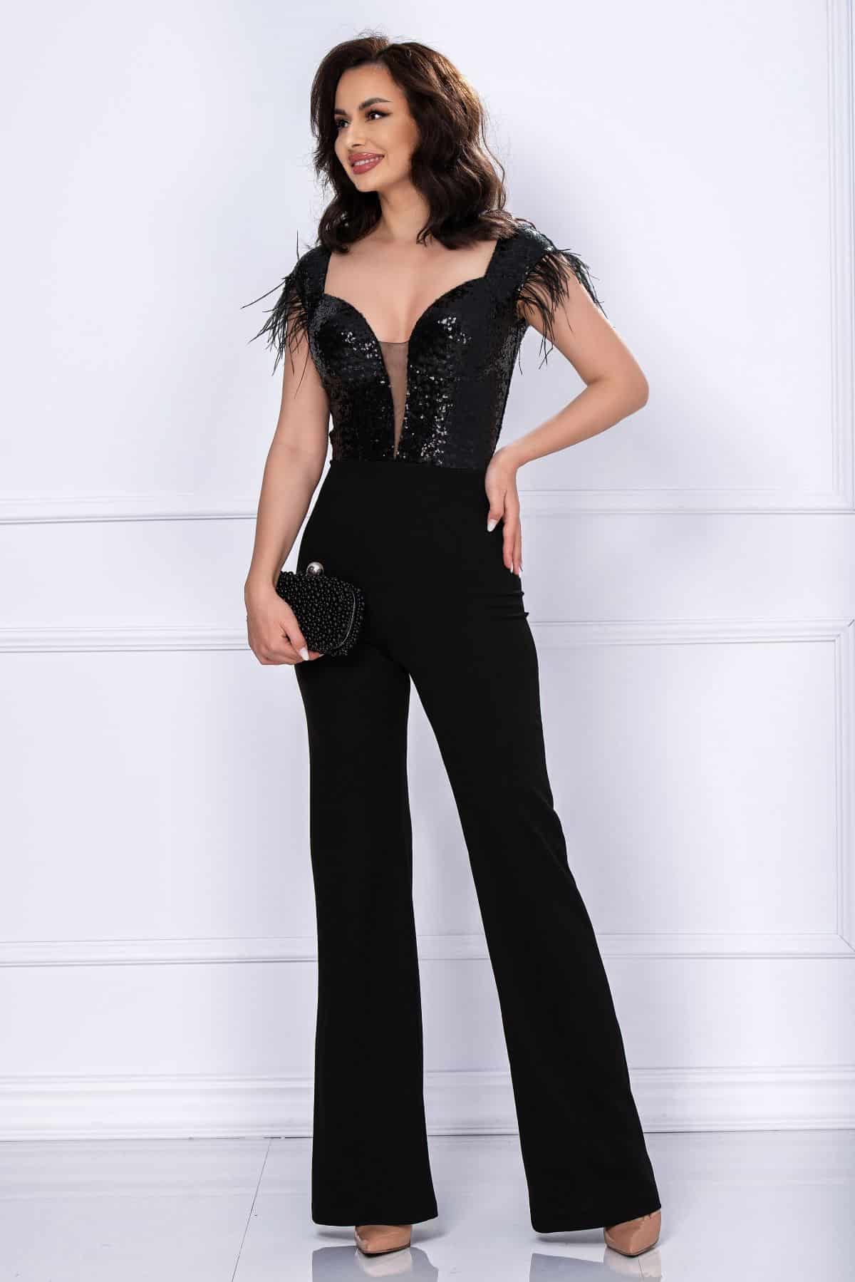 Specification: Salopeta eleganta Ariana neagra evazata cu bust din paiete