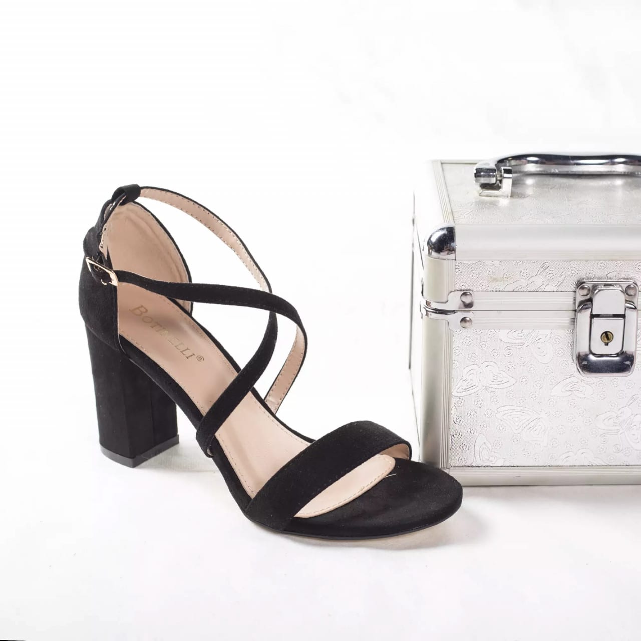 SANDALE CU TOC MARCELINE PIELE ECOLOGICA INTOARSA NEGRU