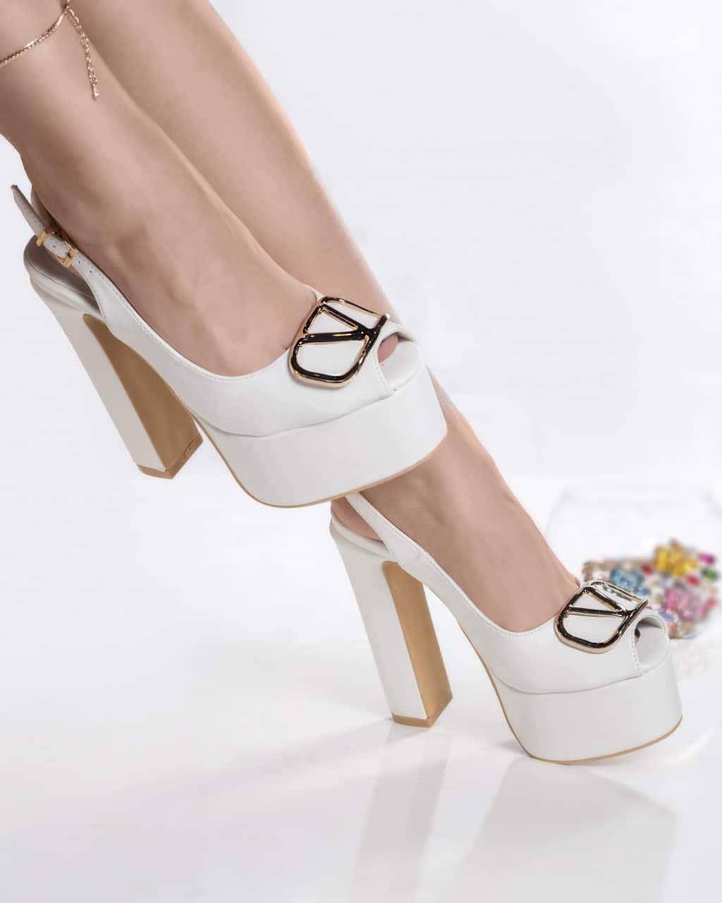 SANDALE DAMA CU TOC ALBE PIELE ECO Tista