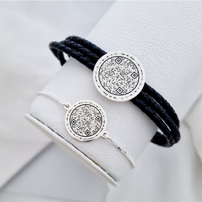 Set 2 bratari – Iubire transmisa prin amprenta vocala si Qr Code – Argint 925 – Lant glisant si piele impletita