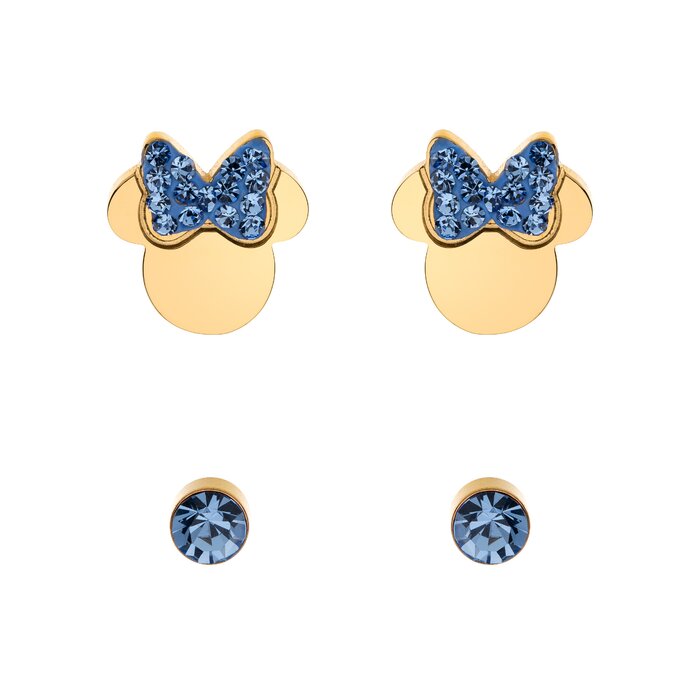 Specification: Set Cercei Disney Minnie Mouse – Otel Medical Inoxidabil Auriu si Cristale Albastre