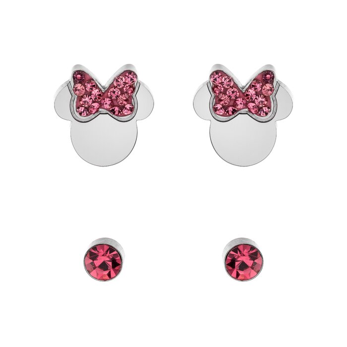 Set Cercei Disney Minnie Mouse – Otel Medical Inoxidabil si Cristale Roz! Cutie bijuterii/saculet CADOU! Transport gratuit la comenzi peste 200 lei! Certificat de autenticitate!