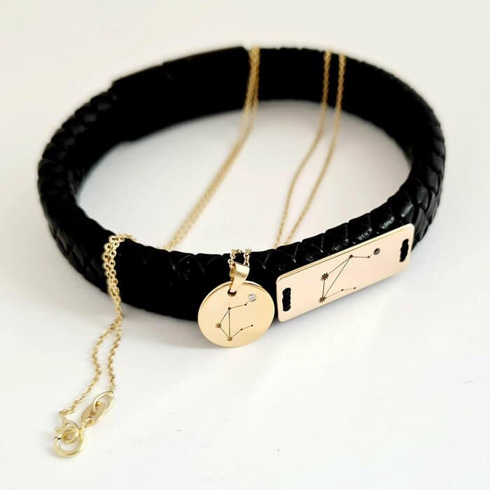 Specification: Set lantisor si bratara – Constelatii – cu Diamant natural alb/negru – Aur Galben 14K