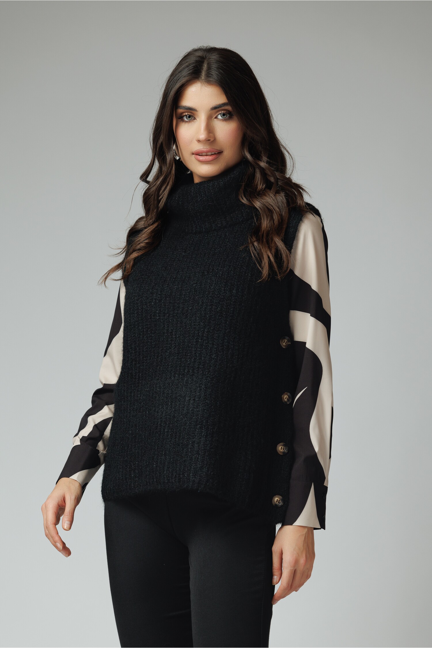 Specification: Vesta casual din tricot neagra cu nasturi pe latrale